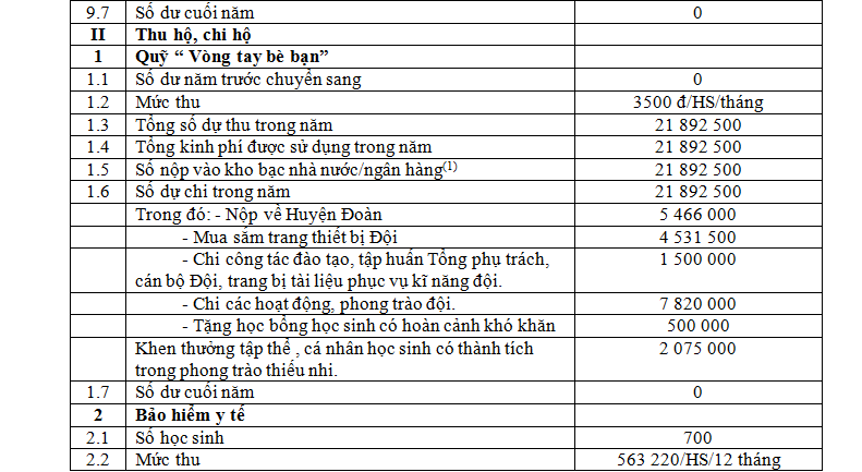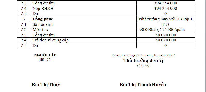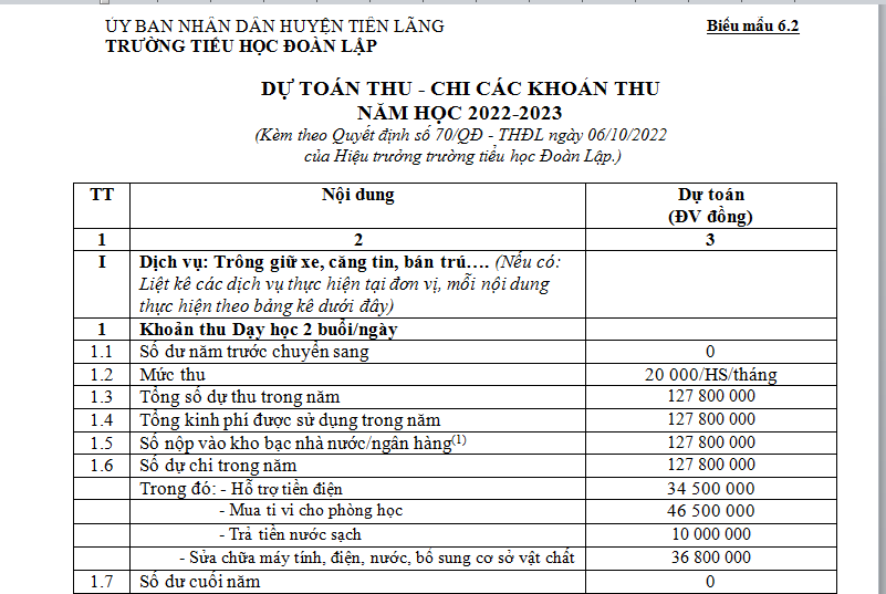 Điều 1. Công bố công khai số liệu dự toán thu, chi các khoản thu năm học 2022-2023 của trường tiểu học Đoàn Lập (chi tiết theo phụ lục đính kèm).