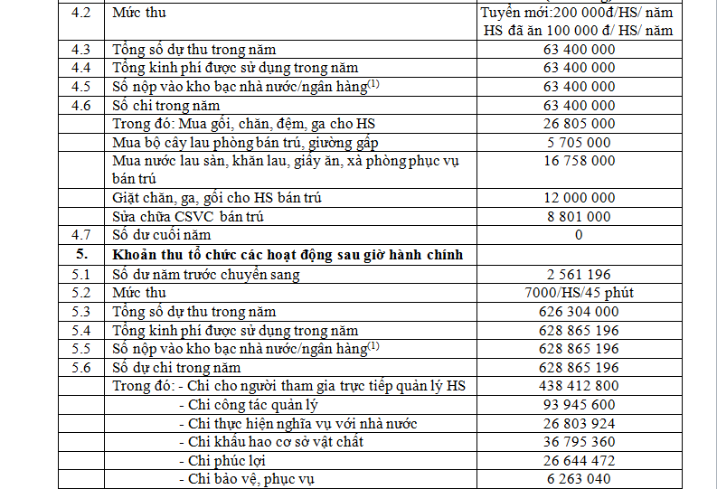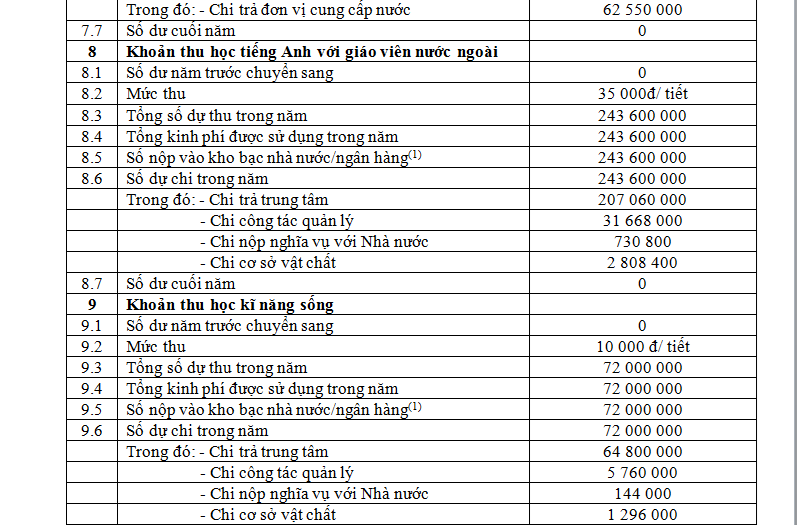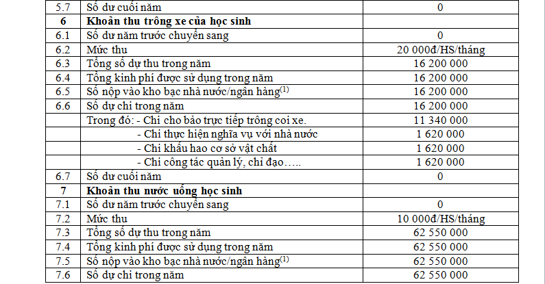 Về việc công bố công khai dự toán thu, chi các khoản thu