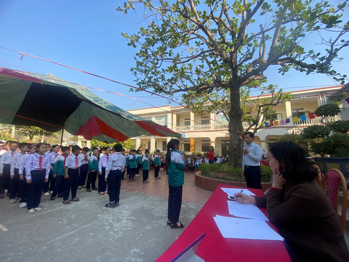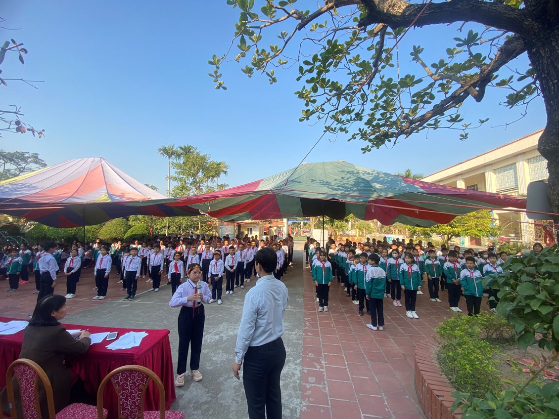Tiếp theo là phần thi Nghi thức Đội của các em học sinh Khối 4, khối 5
