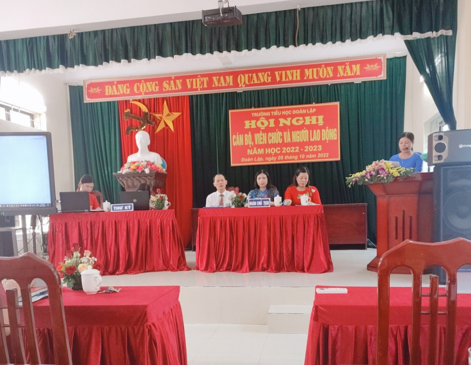 Thực hiện Hướng dẫn số 21, ngày 12/9/2022 của Liên đoàn Lao động huyện Tiên Lãng về việc tổ chức Hội nghị cán bộ, viên chức và người lao động năm học 2022-2023; ngày 05/10/2022, trường Tiểu học Đoàn Lập long trọng tổ chức Hội nghị cán bộ, viên chức và người lao động năm học 2022-2023 nhằm đánh giá những kết quả đạt được của năm học 2021-2022 và xây dựng phương hướng, kế hoạch năm học 2022-2023.