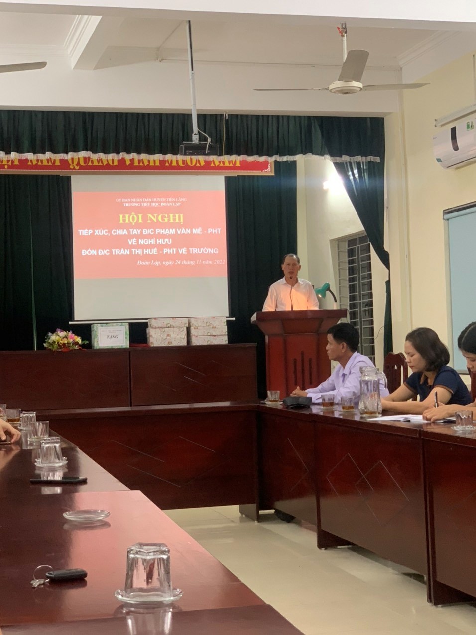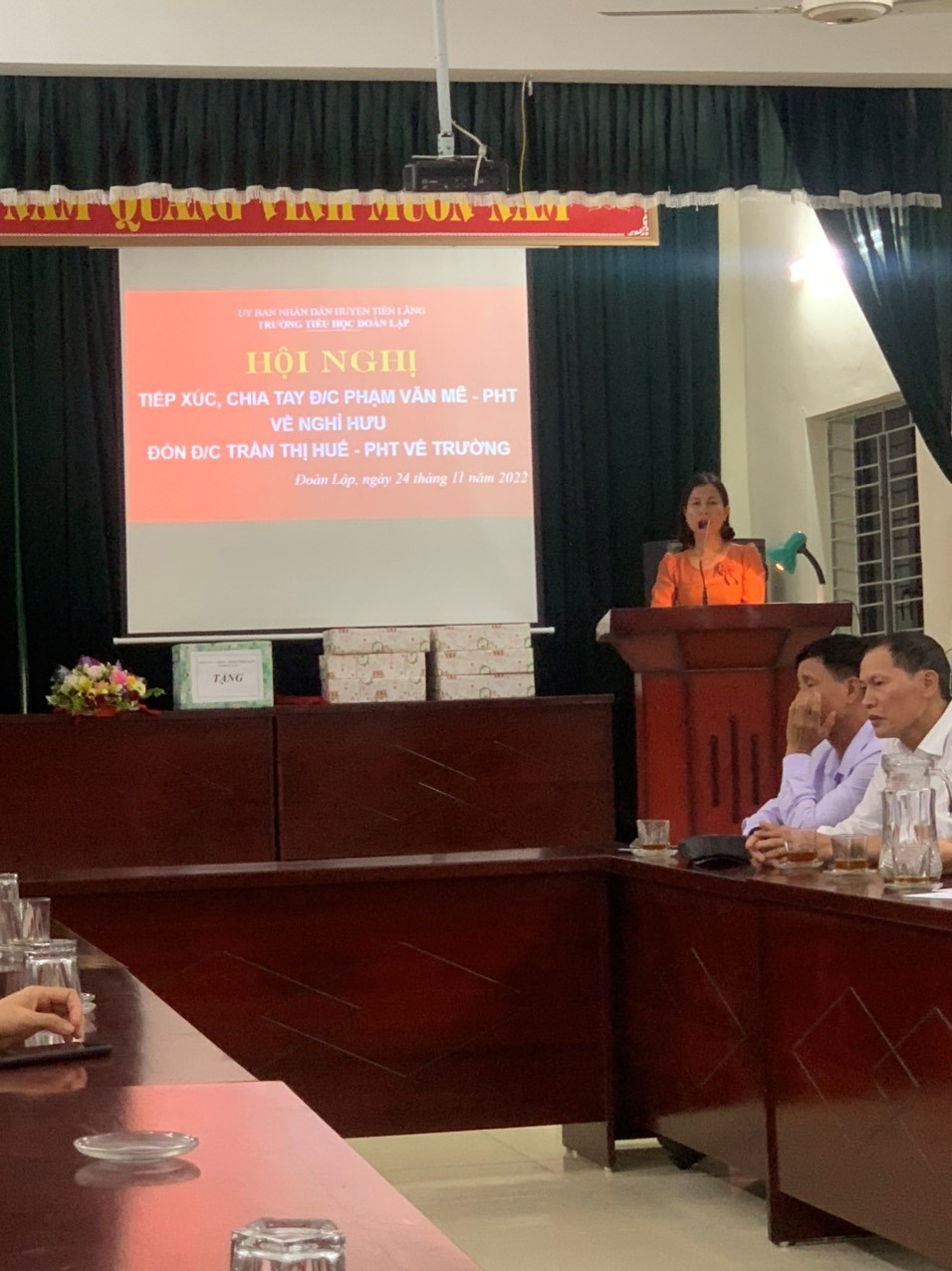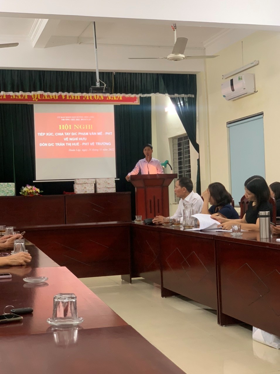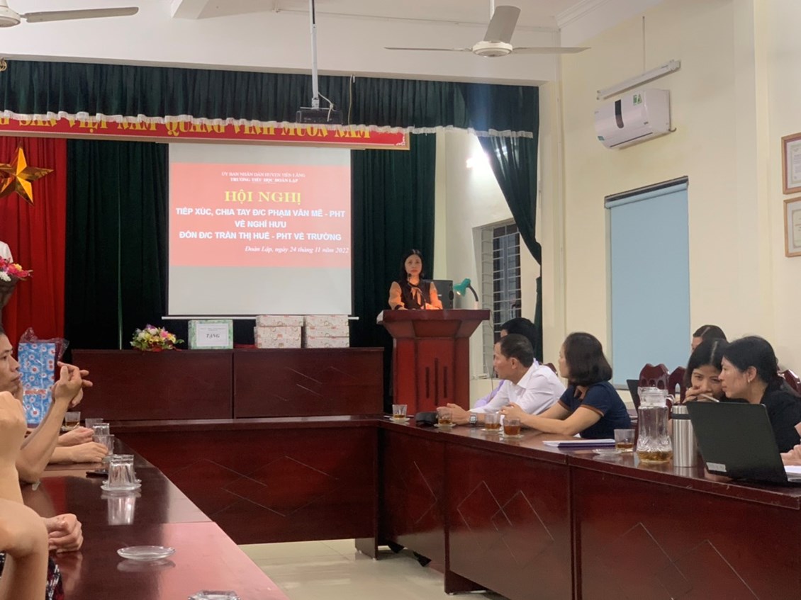 Vào chiều ngày 24/11/2022, tại Hội trường trường Tiểu học Đoàn Lập đã diễn ra Hội nghị tiếp xúc, chia tay đồng chí Phạm Văn Mẽ - PHT về nghỉ hưu, đồng thời đón đồng chí Trần Thị Huế - PHT về trường.
