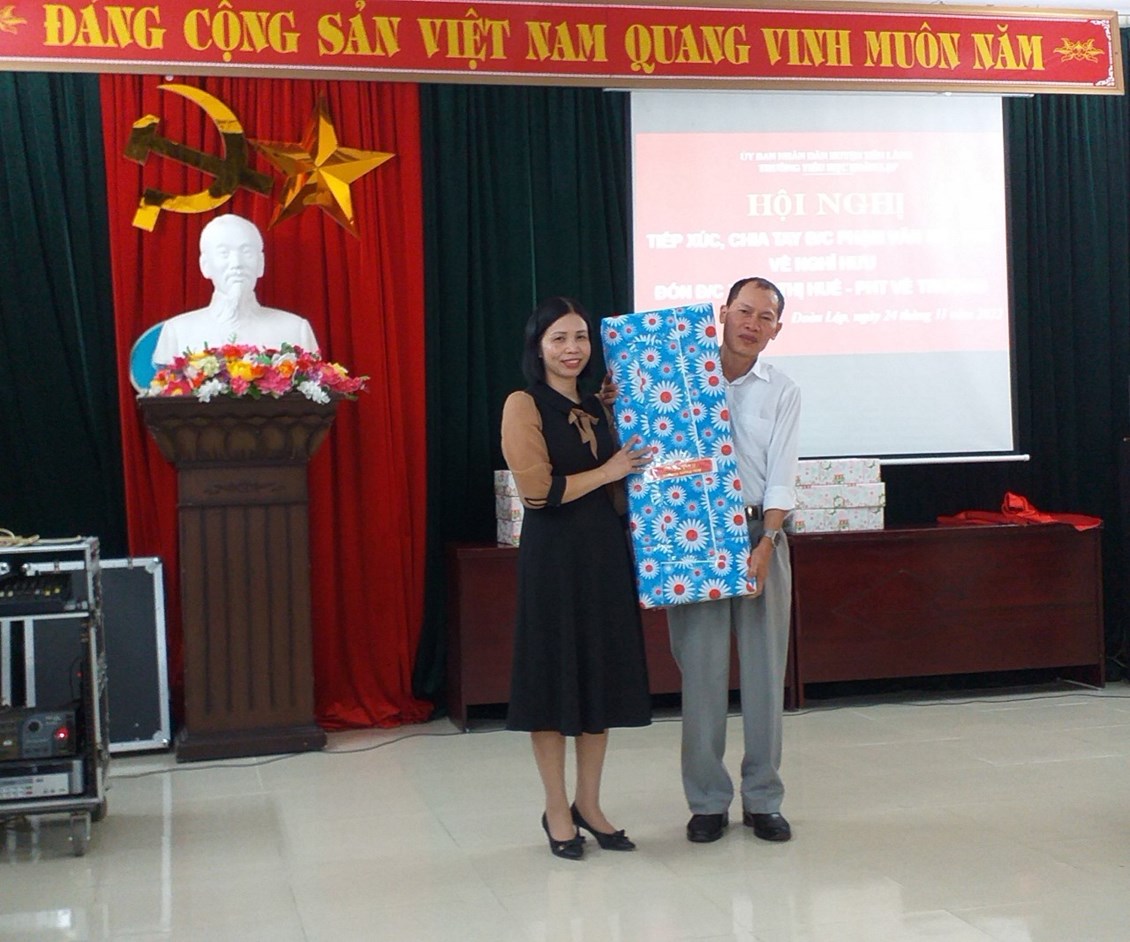 Đến dự Hội nghị có các đồng chí lãnh đạo UBND xã, BGH nhà trường cùng toàn thể các CB GV, NV trong nhà trường và các em học sinh có món quà tặng thầy chứa đựng niềm kính trọng, tri ân đối với thầy.