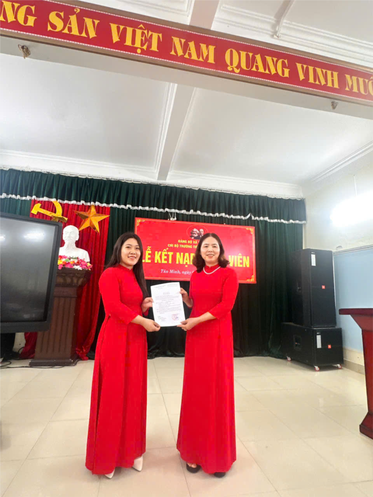 Tham dự buổi lễ có đại diện Chi bộ, Ban Giám hiệu cùng toàn thể đảng viên trong nhà trường. Không khí buổi lễ diễn ra nghiêm túc, trang trọng và đầy tự hào. Đồng chí Nguyễn Thị Vân Ly đã vinh dự được kết nạp vào Đảng Cộng sản Việt Nam. Đây là kết quả của quá trình rèn luyện, phấn đấu không ngừng của đồng chí. Trong thời gian qua, đồng chí luôn hoàn thành tốt nhiệm vụ được giao. Đồng chí có phẩm chất đạo đức tốt và tinh thần trách nhiệm cao. Tại buổi lễ, đại diện Chi bộ đã công bố và trao Quyết định kết nạp Đảng. Đồng chí Nguyễn Thị Vân Ly đã đọc lời tuyên thệ trang nghiêm trước cờ Đảng. Lời tuyên thệ thể hiện quyết tâm phấn đấu và cống hiến của đồng chí. Các đảng viên tham dự đã chúc mừng và động viên đồng chí. Chi bộ cũng giao nhiệm vụ cụ thể cho đảng viên mới trong thời gian tới. Đồng chí được phân công tiếp tục rèn luyện, nâng cao bản lĩnh chính trị. Buổi lễ kết nạp kết thúc trong không khí trang trọng và đầy ý nghĩa.