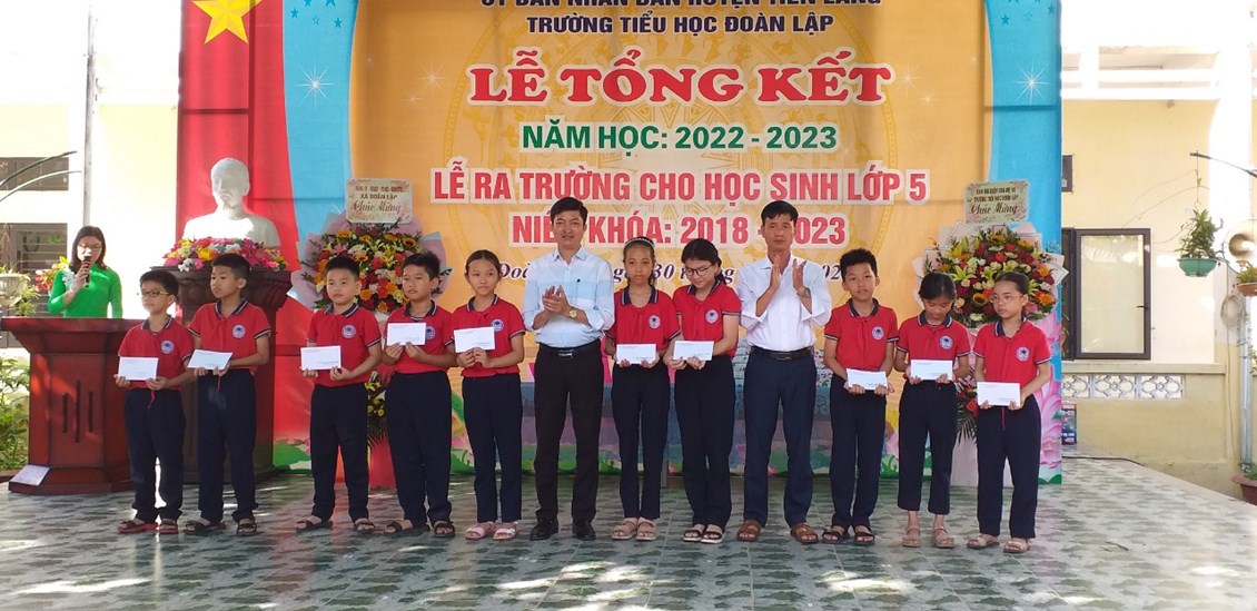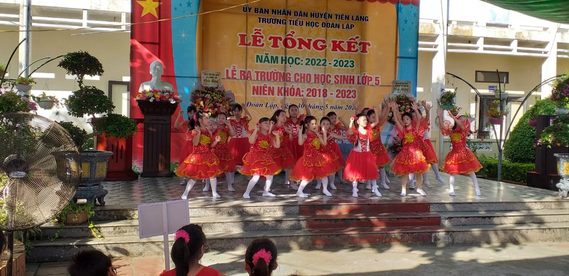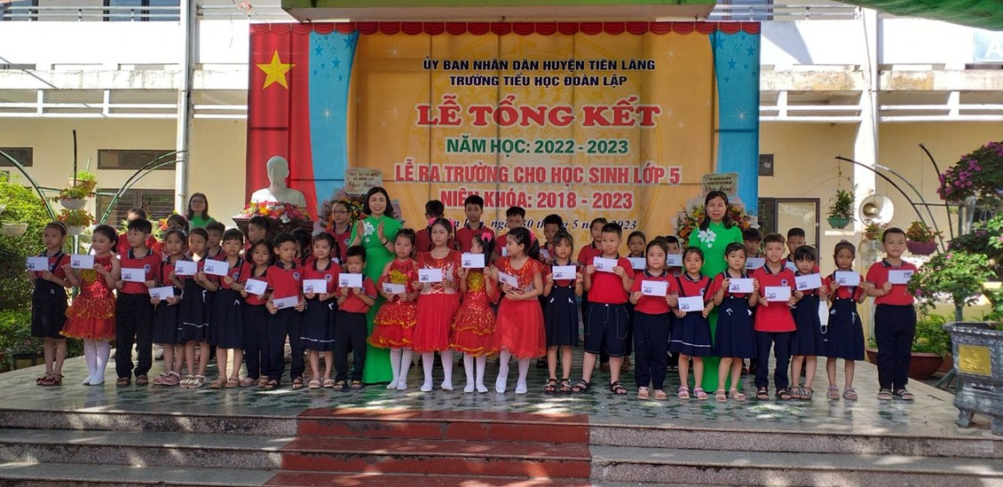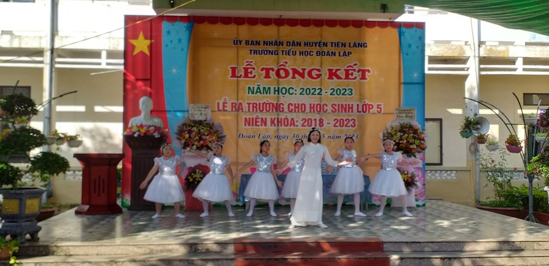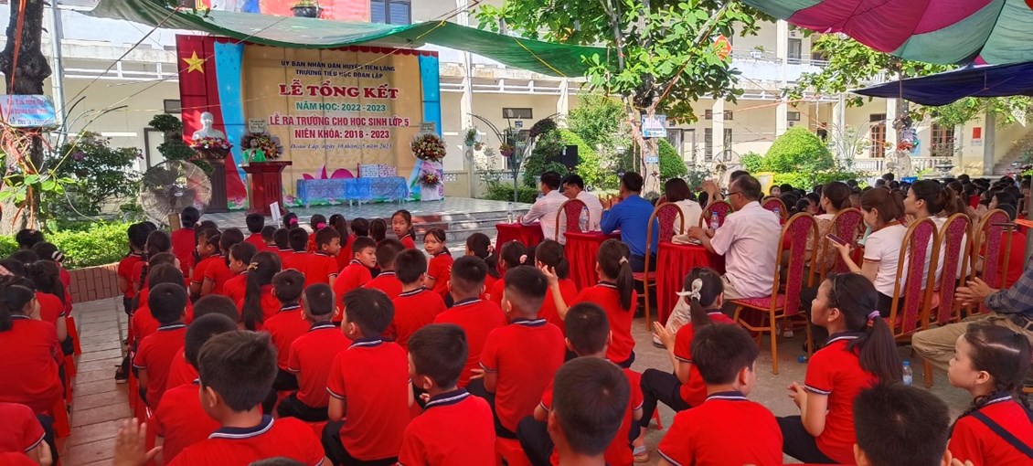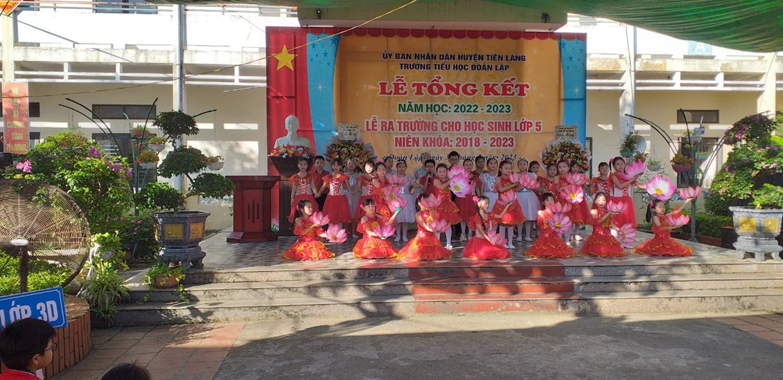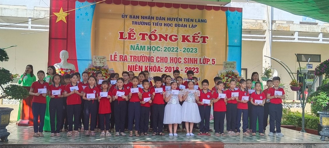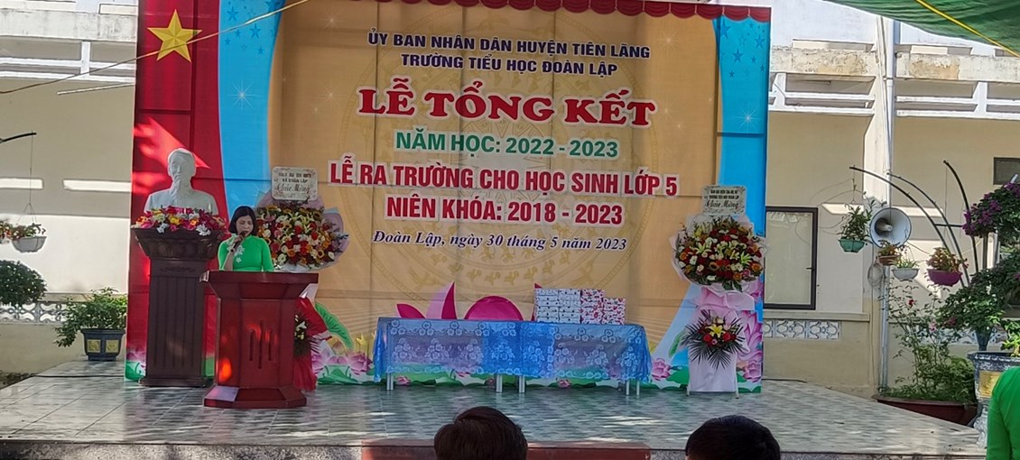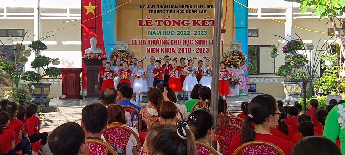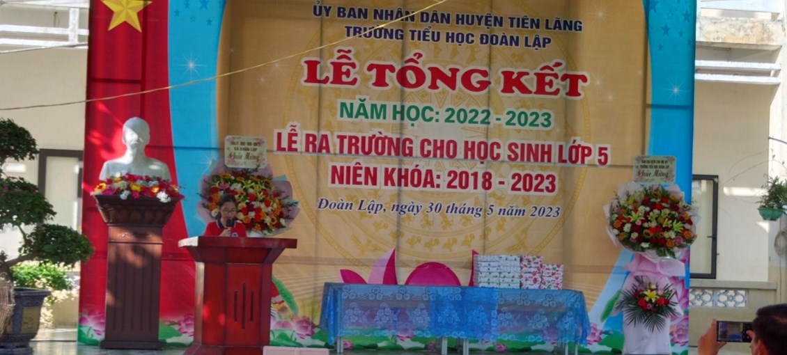 Vào sáng ngày 30/4/2023, các vị đại biểu khách quý, các thầy cô giáo, các bậc phụ huynh cùng toàn thể các em HS đã về dự Lễ tổng kết, tuyên dương khen thưởng năm học 2022 - 2023 của trường Tiểu học Đoàn Lập.
