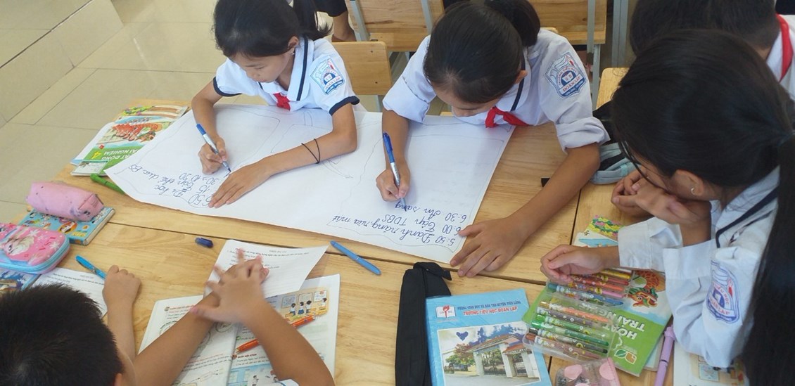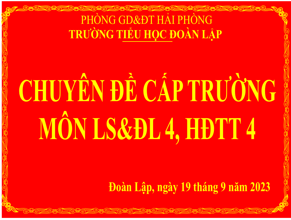 Vào hồi 13h45’ ngày 19 tháng 9 năm 2023, tại phòng học số 21 trường Tiểu học Đoàn Lập diễn ra 2 tiết dạy chuyên đề cấp trường, gồm: Tiết 1 là môn Lịch sử và Địa lý 4 do cô Đinh Thị Vinh lên lớp cùng các em HS lớp 4C và môn Hoạt động trải nghiệm 4 do cô Vũ Thị Bích Hiểu dạy HS lớp 4D. Dưới đây là một vài hình ảnh: