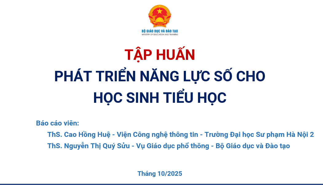 Nội dung tập huấn bám sát Thông tư số 02/2025/TT-BGDĐT quy định Khung năng lực số cho người học gồm 6 miền năng lực và 24 năng lực thành phần; đồng thời thực hiện hướng dẫn tại Công văn 3456/BGDĐT-GDPT về tổ chức thực hiện khung năng lực số trong các cơ sở giáo dục phổ thông.