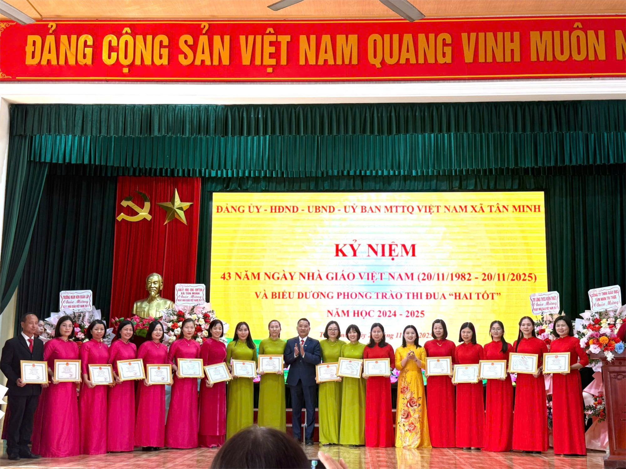 Sáng 20/11, trong không khí hân hoan của cả nước hướng về Ngày Nhà giáo Việt Nam, Đảng ủy – HĐND – UBND – UBMTTQVN xã Tân Minh long trọng tổ chức kỷ niệm 43 năm Ngày Nhà giáo Việt Nam và biểu dương phong trào thi đua “Hai tốt” năm học 2024 – 2025. Đây là dịp ý nghĩa để tri ân những người đã gieo hạt giống tri thức, nuôi dưỡng nhân cách cho bao thế hệ học trò.