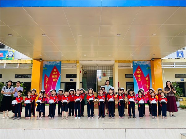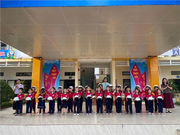 Tập ảnh : Ảnh HS lớp1 nhận mũ bảo hiểm của công ty Hon-đa
