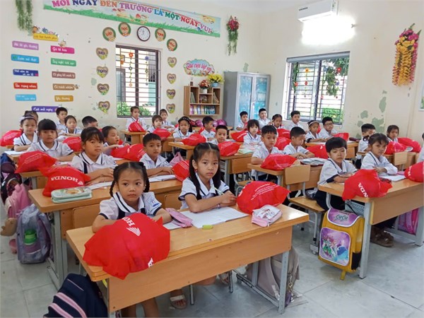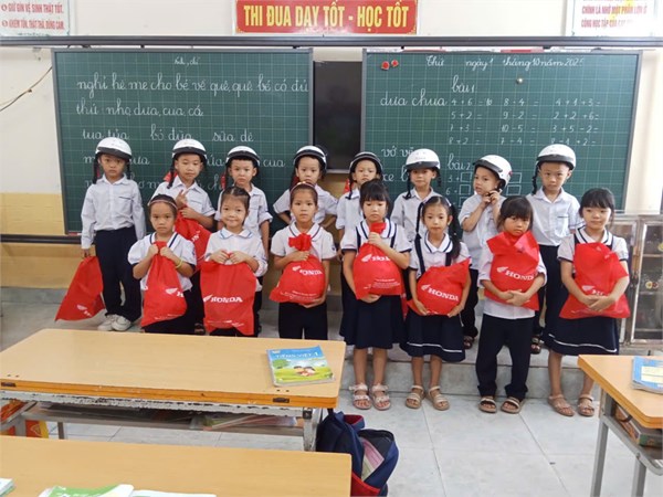 • HS lớp 1 được nhận mũ bảo hiểm của Hon-đa